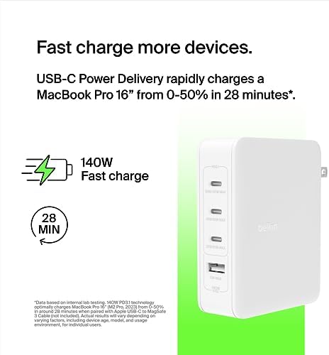 - Charge your devices quickly and efficiently with the Belkin 140W 4-Port GaN Wall Charger.