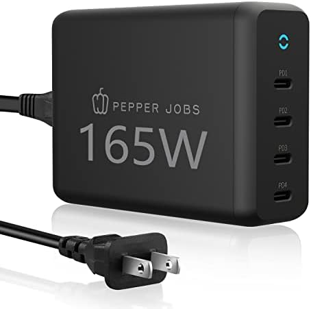 - Charge your devices efficiently with the PEPPER JOBS 165W USB-C 4-Port PD GaN Charger.